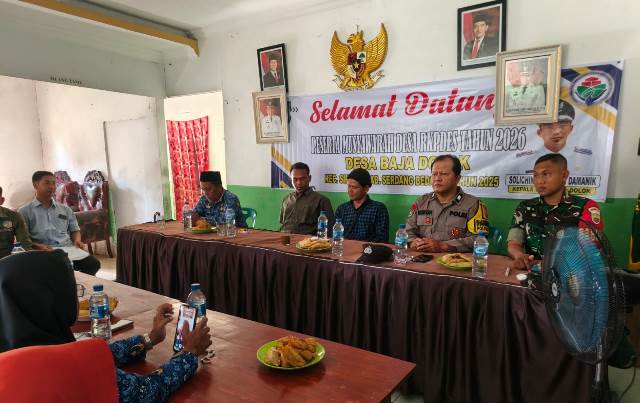 TEBING TINGGI (Sumut) ketikberita.com | Bhabinkamtibmas Polsek Sipispis Aiptu Iwan Kukuh Santoso menghadiri kegiatan Musyawarah Desa (Musdes) dalam rangka penyusunan Rencana Kerja Pemerintah Desa (RKPDes) Tahun 2026. Kegiatan dilaksanakan di Aula Desa Baja Dolok Kecamatan Sipispis, Kabupaten Serdang Bedagai, pada Selasa (28/10/2025).
