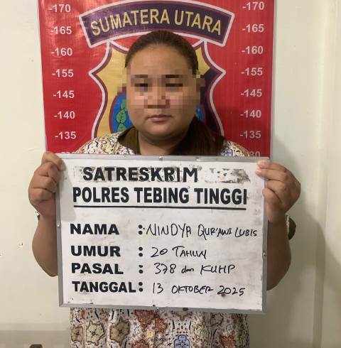 TEBING TINGGI (Sumut) ketikberita.com | Sat Reskrim Polres Tebing Tinggi berhasil mengamankan seorang perempuan berinisial NQL alias Nindya (20), warga Jalan Kutilang Perum Purnawirawan, yang diduga melakukan tindak pidana penipuan berkedok investasi dengan kerugian mencapai Rp45 juta.