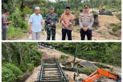 ACEH SINGKIL (Aceh) ketikberita.com | Pemerintah Kabupaten Aceh Singkil bersama unsur Forum Koordinasi Pimpinan Daerah (Forkompimda) meninjau pembangunan jembatan Bailey di Kampung Lae Sipola, Kecamat...
