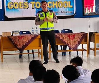 TEBING TINGGI (Sumut) ketikberita.com | Melalui kegiatan Police Goes To School, Unit Kamsel Satlantas Polres Tebing Tinggi menyampaikan dan memberikan sosialisasi serta mengajak para pelajar untuk ter...