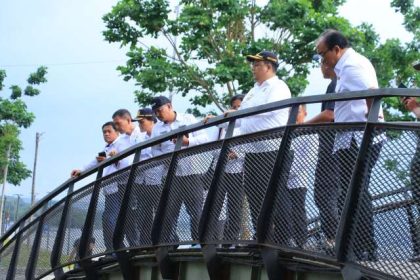 SAMOSIR (Sumut) Ketikberita.com | Bupati Vandiko T. Gultom bersama Wakil Bupati (Wabup) Ariston Tua Sidauruk meninjau persiapan venue utama Trail of The King (TOTK) di Segmen 5 Waterfront City Panguru...
