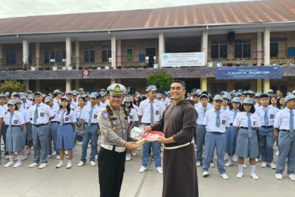 SAMOSIR (Sumut) Ketikberita.com | Dalam rangka memperingati HUT ke-70 Lalu Lintas Polri, Polres Samosir melalui Satuan Lalu Lintas (Sat Lantas) melaksanakan program Police Go To School di SMA Santo Mi...