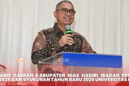 NIAS (Sumut) Ketikberita.com | Sekretaris Daerah Kabupaten Nias, Samson P. Zai, S.H., M.H, menghadiri Ibadah Perayaan Natal 2025 dan Syukuran Tahun Baru 2026 yang diselenggarakan oleh Universitas Nias...