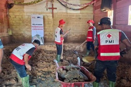 TAPANULI TENGAH (Sumut) ketikberita.com | Relawan Palang Merah Indonesia (PMI) melaksanakan aksi bersih lingkungan pasca banjir dan longsor di Gereja Bathel IndonesiaPasarBaru, yang berlokasi di gg ce...