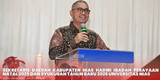 NIAS (Sumut) Ketikberita.com | Sekretaris Daerah Kabupaten Nias, Samson P. Zai, S.H., M.H, menghadiri Ibadah Perayaan Natal 2025 dan Syukuran Tahun Baru 2026 yang diselenggarakan oleh Universitas Nias, bertempat di Gereja BNKP Jemaat Hosiana. Kamis, 15 Januari 2026.