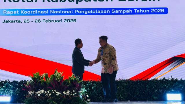 Sertifikat diserahkan oleh Menteri Lingkungan Hidup/Badan Pengendalian Lingkungan Hidup, Hanif Faisol Nurofiq di sela-sela acara Rapat Koordinasi (Rakoor) Nasional Pengelolaan Sampah Tahun 2026, yang digelar di Gedung Sasono Langen Budoyo, Taman Mini Indonesia Indah (TMII), Jakarta, Rabu (25/2/2026)