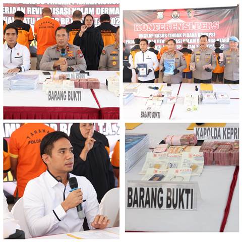BATAM (Kep.Riau) Ketikberita.com | Kapolda Kepulauan Riau Irjen. Pol. Asep Safrudin, S.I.K., M.H., memimpin konferensi pers pengungkapan kasus tindak pidana korupsi pada proyek Revitalisasi Kolam Dermaga Utara Terminal Batu Ampar, Batam. Proyek dengan nilai kontrak Rp75,5 miliar tersebut, berdasarkan hasil audit investigatif Badan Pemeriksa Keuangan (BPK) RI, menimbulkan kerugian keuangan negara hingga mencapai Rp30,6 miliar.