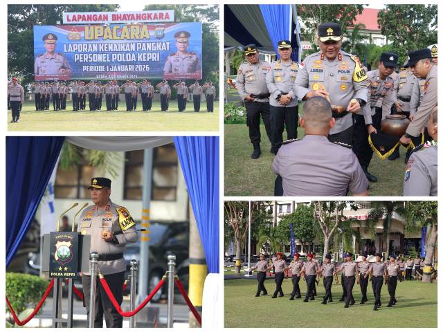 BATAM (Kep.Riau) Ketikberita.com | Kamis Polda Kepri laksanakan Upacara Laporan Kenaikan Pangkat Personel Polda Kepri Periode 1 Januari 2026 yang dilaksanakan di Lapangan Bhayangkara Polda Kepulauan Riau, pada Rabu (31/12/2025).