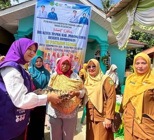 PADANG LAWAS (Sumut) ketikberita.com | Dalam memeriah hari kesehatan Nasional ibu Ketua TP. PKK Kabupaten Padang Lawas Ny. Mahzalena Putra Mahkota Alam Hasibuan beserta pengurus PKK Kabupaten Padang Lawas melakukan peninjauan Imunisasi Kejar dalam kegiatan PENARI (Sepekan Mengejar Imunisasi) Di Posyandu Mangga bertempat di Desa Sidomulyo Kecamatan Barumun Selatan. Senin (27/10/25).
