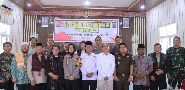 Doa lintas agama kemudian dipanjatkan secara bergiliran oleh perwakilan agama, yakni doa Katolik oleh Diakon Angelo Purba, doa Islam oleh Ketua MUI Kabupaten Samosir Ust. Erwansyah, M.H., serta doa Kristen oleh Praeses HKBP Distrik VII Samosir Pdt. Rintalori Sianturi, M.Th.
