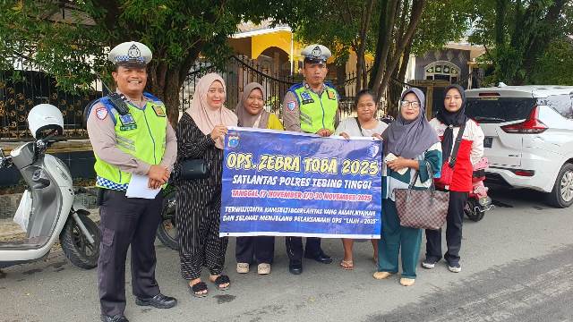 TEBING TINGGI (Sumut) ketikberita.com | Operasi Zebra Toba 2025 Polres Tebing Tinggi, Satgas II Preemtif dipimpin Kasatgas Iptu Supriyadi melaksanakan giat Dikmas Public Address dilokasi rawan laka lantas dan pelanggaran lalu lintas yang berlangsung di Jalan Sudirman dan Jalan SM Raja Kota Tebing Tinggi, Senin (24/11/2025).