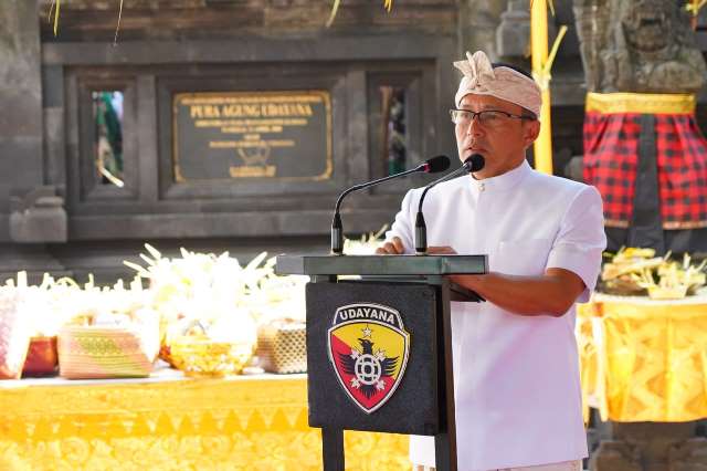 DENPASAR (Bali) ketikberita.com | Pangdam IX/Udayana Mayjen TNI Piek Budyakto didampingi para Pejabat Utama Kodam IX/Udayana menghadiri kegiatan Piodalan Puja Wali Pura Agung Udayana yang dirangkaikan dengan Dharma Shanti Hari Raya Nyepi Tahun Baru Saka 1948/2026 M dengan tema “Vasudhaiva Kutumbakam , Satu Bumi Satu Keluarga Wujudkan TNI PRIMA”, Kamis (2/4/2026), di Pura Agung Udayana, Makodam IX/Udayana, Jalan Udayana No. 1 Denpasar.