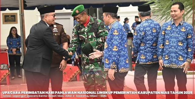 “Semangat kepahlawanan harus kita wujudkan dengan bekerja keras, berpikir jernih, dan melayani dengan tulus,” ujarnya”. Sumber Kominfo Kabupaten Nias.