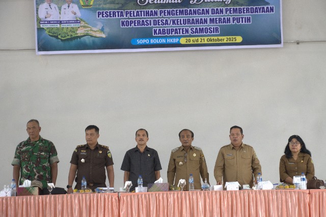 SAMOSIR (Sumut) ketikberita.com | Pemerintah Kabupaten (Pemkab) Samosir melalui Dinas Koperasi, Usaha Mikro, Kecil dan Menengah, Tenaga Kerja Perindustrian dan Perdagangan (Diskopnakerindag) menggelar Pelatihan Pengembangan dan Pemberdayaan Koperasi Desa/Kelurahan Merah Putih di Samosir, Sopo Bolon HKBP Pangururan.