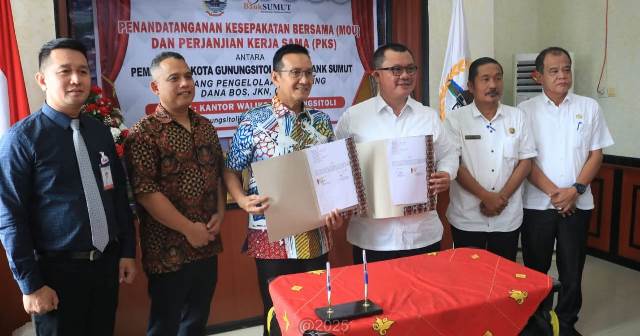 GUNUNGSITOLI (Sumut) ketikberita.com | Wali Kota Gunungsitoli Sowa’a Laoli, SE, M.Si melaksanakan penandatanganan MoU dan PKS (Perjanjian Kerjasama) Antara Pemerintah Kota Gunungsitoli dengan PT. Bank Sumut Cabang Gunungsitoli tentang Dana Bos, Dana JKN, dan Dana Opsen, yang bertempat di Ruang Rapat Wali Kota Gunungsitoli, Rabu (12/11/2025).