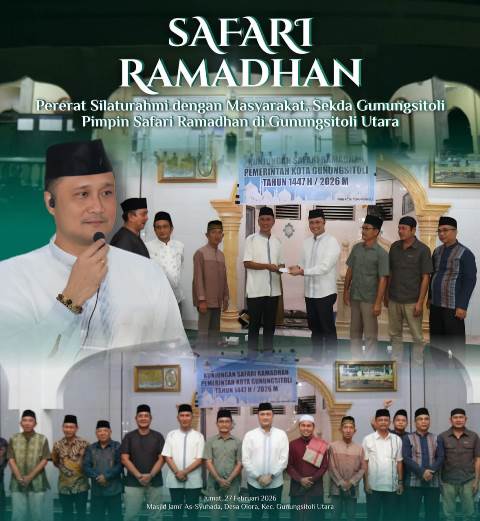 GUNUNGSITOLI (Sumut) ketikberita.com | Pemerintah Kota Gunungsitoli melaksanakan kegiatan Safari Ramadhan 1447 Hijriah di wilayah Kecamatan Gunungsitoli Utara. Sekretaris Daerah Kota Gunungsitoli Andhika P. Laoly, S.STP., M.Si., CGCAE., memimpin langsung kunjungan Tim Safari Ramadhan Pemerintah Kota Gunungsitoli Tahun 2026 yang dipusatkan di Masjid Jami’ As-Syuhada, Desa Olora, Kecamatan Gunungsitoli Utara, pada Jumat malam (27/02/2026).