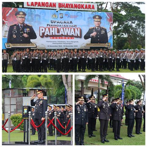 Foto: Polda Kepri Gelar Upacara peringatan Hari Pahlawan ke-80 Tahun 2025, di Lapangan Bhayangkara Polda Kepri, Senin (10/11/25) – (r/wati sgn)
