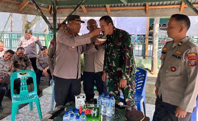 Setibanya di halaman Makoramil 03 Pangururan, rombongan disambut langsung oleh Danramil 03 Pangururan Kapten Kav Edianto Simangunsong beserta seluruh personel Koramil. Suasana semakin hangat dengan nyanyian, salam-salaman, doa bersama, serta momen pemotongan kue ulang tahun. Dalam momen tersebut, AKP Bangun Tua Dalimunthe menyuapi potongan kue pertama kepada Danramil 03 Pangururan sebagai wujud keharmonisan dan sinergitas antara TNI dan Polri, Selasa (7/10/2025)