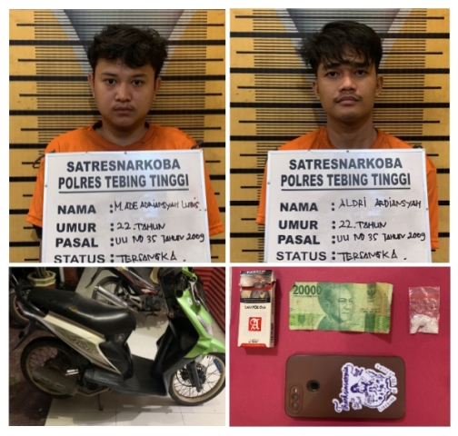 TEBING TINGGI (Sumut) ketikberita,com | Upaya pemberantasan narkoba diwilayah hukum Polres Tebing Tinggi kembali membuahkan hasil. Dua pemuda berhasil ditangkap personel Satresnarkoba karena kedapatan membawa narkotika jenis sabu.