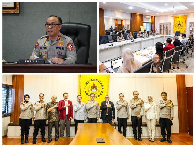 “Kami sangat antusias dan mengapresiasi langkah terbuka Polri dalam memanfaatkan riset ilmiah kampus sebagai dasar kajian penyusunan program-program kepolisian ke depan. Kolaborasi ini menjadi ruang strategis bagi dunia akademik untuk berkontribusi nyata dalam mendukung kebijakan Polri yang berbasis data dan keilmuan,” ujar Direktur Pascasarjana Universitas Borobudur, Prof. Faisal Santiago, S.H., M.M.