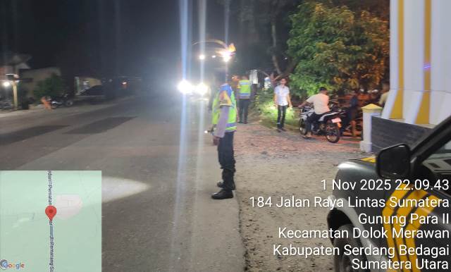 TEBING TINGGI (Sumut) ketikberita.com | Dalam upaya menjaga situasi Kamtibmas diwilayah hukumnya, Polsek Dolok Merawan Polres Tebing Tinggi melaksanakan patroli malam guna menindak potensi aktivitas geng motor, balap liar, dan tawuran yang meresahkan warga. Kegiatan yang dilaksanakan pada Sabtu malam (1/11/2025) ini berlangsung aman dan kondusif.