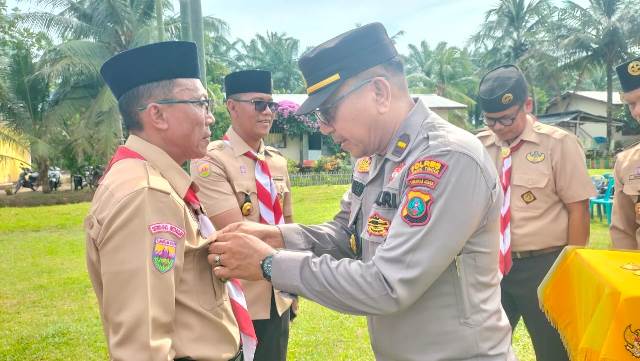 Wakapolsek Ipda MTP Marpaung menyampaikan pentingnya sinergi antara pemerintah, sekolah, dan masyarakat dalam mendukung kegiatan kepramukaan sebagai wahana pendidikan karakter generasi muda.