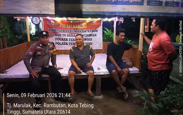 TEBING TINGGI (Sumut) ketikberita.com | Polsek Tebing Tinggi Resor Tebing Tinggi Brigadir Supandi melaksanakan sambang serta monitoring pos sat kamling dan memberikan himbauan serta pesan kamtibmas kepada petugas jaga pos sat kamling di Dusun 3 Desa Sei Serimah Kecamatan Tebing Tinggi Kabupaten Serdang Bedagai, Senin malam (9/2/2026).