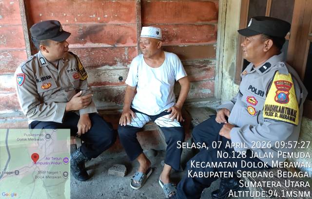 TEBING TINGGI (Sumut) ketikberita.com | Dalam upaya menjaga situasi keamanan dan ketertiban masyarakat (Kamtibmas), Bhabinkamtibmas Polsek Dolok Merawan Polres Tebing Tinggi Aipda E Purba dan Bripka M. Irfan Fadillah melaksanakan kegiatan sambang dan silaturahmi dengan tokoh agama dan warga di Desa Dolok Merawan Kecamatan Dolok Merawan Kabupaten Serdang Bedagai, Selasa (7/4/2026).