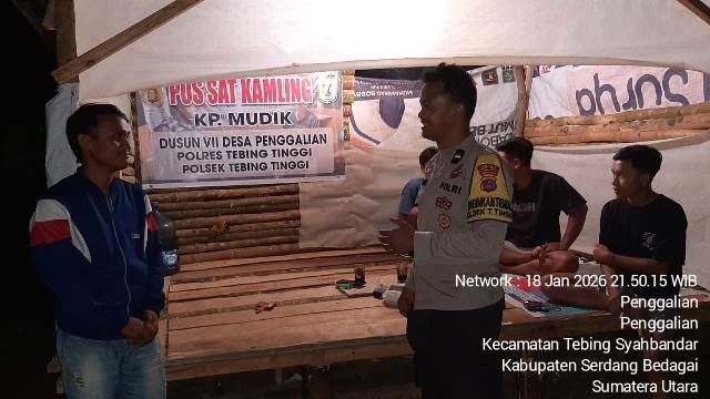 TEBING TINGGI (Sumut) ketikberita.com | Bhabinkamtibmas Polsek Tebing Tinggi Resor Tebing Tinggi Aipda Muhammad Dani melakukan sambang serta monitoring dan berdialog dengan petugas jaga pos sat kamling Dusun VII Kp. Mudik Desa Penggalian Kecamatan Tebing Syahbandar Kabupaten Serdang Bedagai, Minggu (18/1/2026).