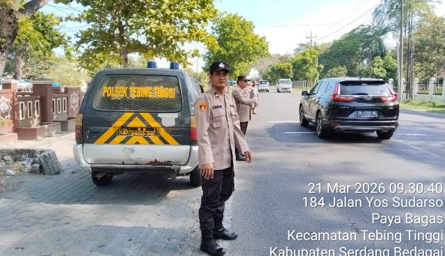 TEBING TINGGI (Sumut) ketikberita.com | Dalam rangka menjaga situasi keamanan dan ketertiban masyarakat (kamtibmas) selama perayaan Idul Fitri, Polres Tebing Tinggi melalui Polsek Tebing Tinggi melaksanakan patroli rutin pada Sabtu (21/3/2026).