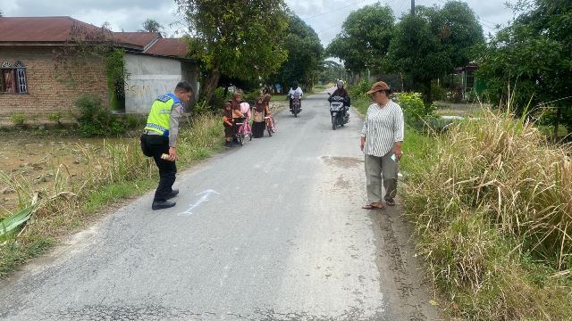 Peristiwa itu melibatkan sepeda motor Supra X tanpa TNKB/Nopol yang dikendarai Bambang Sudirman (43) warga Desa Kuta Baru dengan seorang pejalan kaki bernama Supraptik (52) warga Desa Paya Lombang.