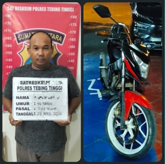 TEBING TINGGI (Sumut) ketikberita.com | Aksi pencurian sepeda motor yang terjadi di Kota Tebing Tinggi akhirnya berhasil diungkap tim gabungan Subdit III Ranmor Ditreskrimum Polda Sumut bersama Sat Reskrim Polres Tebing Tinggi. Seorang pria dewasa berinisil HJS (45), yang merupakan warga Medan berhasil diamankan setelah sempat menjadi buronan atas kasus pencurian kendaraan bermotor (curanmor).