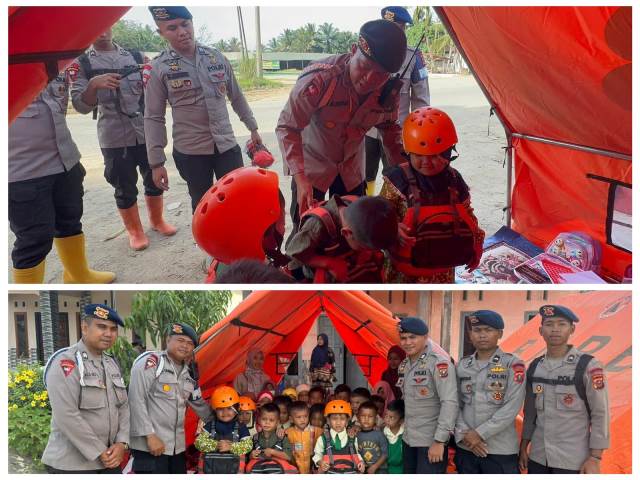 Dalam kegiatan tersebut, personel Brimob Polda Sumut mengajak anak-anak mengikuti berbagai aktivitas positif, seperti permainan edukatif, bernyanyi bersama, serta interaksi yang menyenangkan. Selain itu, diberikan pula edukasi dasar mengenai langkah-langkah sederhana menyelamatkan diri saat terjadi bencana banjir.