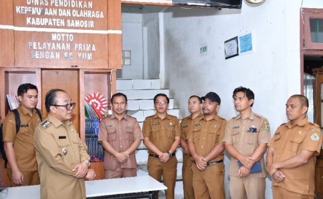 SAMOSIR (Sumut) ketikberita.com | Wakil Bupati (Wabup) Samosir, Ariston Tua Sidauruk yang didampingi Asisten III, Kadis Kominfo, Plt. BKPSDM, Plt. Inspektur melakukan sidak (inspeksi mendadak) ke sejumlah Organisasi Perangkat Daerah (OPD) meningkatkan pengawasan kerja, disiplin kepegawaian dan memastikan pelayanan publik berjalan baik, Selasa (20/1/2026)