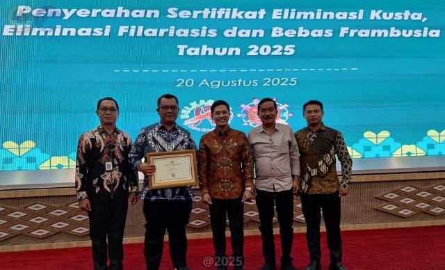 GUNUNGSITOLI (Sumut) ketikberita.com | Wali Kota Gunungsitoli, Sowa’a Laoli, menerima Sertifikat Eliminasi Kusta, Sertifikat Eliminasi Filariasis, dan Sertifikat Bebas Frambusia dari Menteri Kesehatan RI. Penghargaan ini diberikan atas keberhasilan Kota Gunungsitoli dalam mencapai eliminasi kusta, filariasis, dan frambusia berdasarkan hasil assessment dan survei yang dilakukan sejak tahun 2024, Rabu (20/8/25).